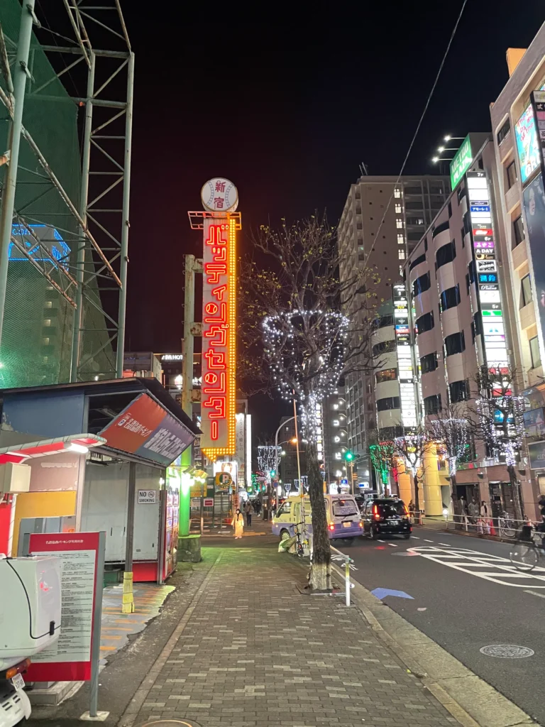 1.Start at the Main Gate: Begin at the intersection with Yasukuni-dori, where the iconic red archway sign for “Kabukicho Ichibangai” stands. This is the primary photo spot.