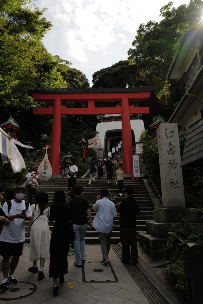 From any of these stations, you walk toward the coast and cross the Benten-bashi Bridge to reach the island. This walk offers fantastic views of the mainland and the sea, setting the tone for your exploration.