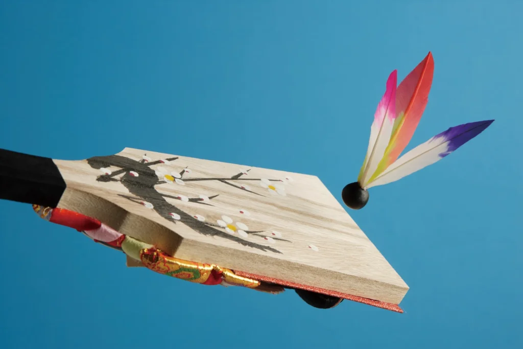 •Hanetsuki (羽根つき): A game similar to badminton, played with decorative wooden paddles called hagoita and a brightly colored shuttlecock. It’s a casual game, and a common, fun “punishment” for losing is getting a mark on your face with ink.
