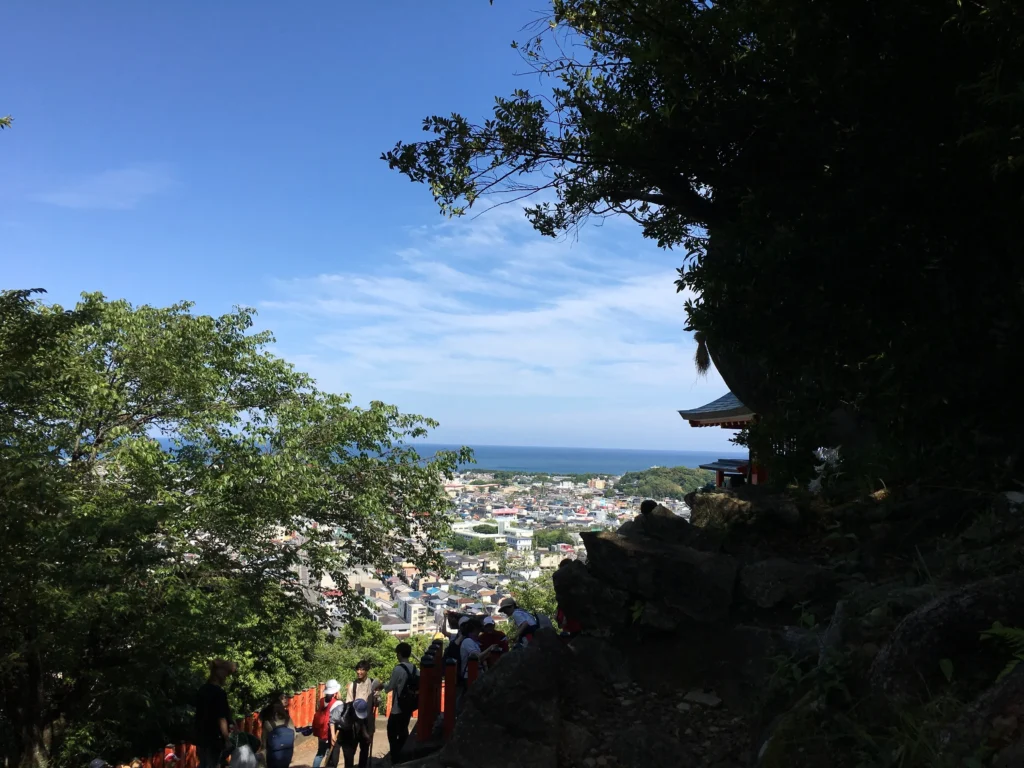 The Summit: At the top of the pass, you’ll find the small, moss-covered Jizo statue. This is a perfect place to rest and soak in the quiet atmosphere of the forest. A short path from the summit leads to a lookout point with a breathtaking view of the coastline. On a clear day, the sweep of Shichiri Mihama Beach is a spectacular reward for your efforts.