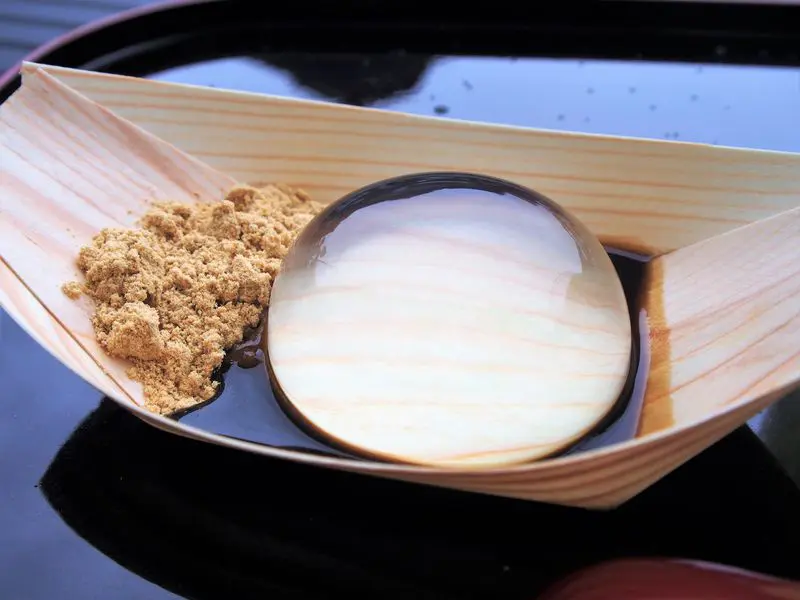 During production, the moment of removing from the mold creates a charming “pop” sound, which has become part of Mizu Shingen Mochi’s appeal.