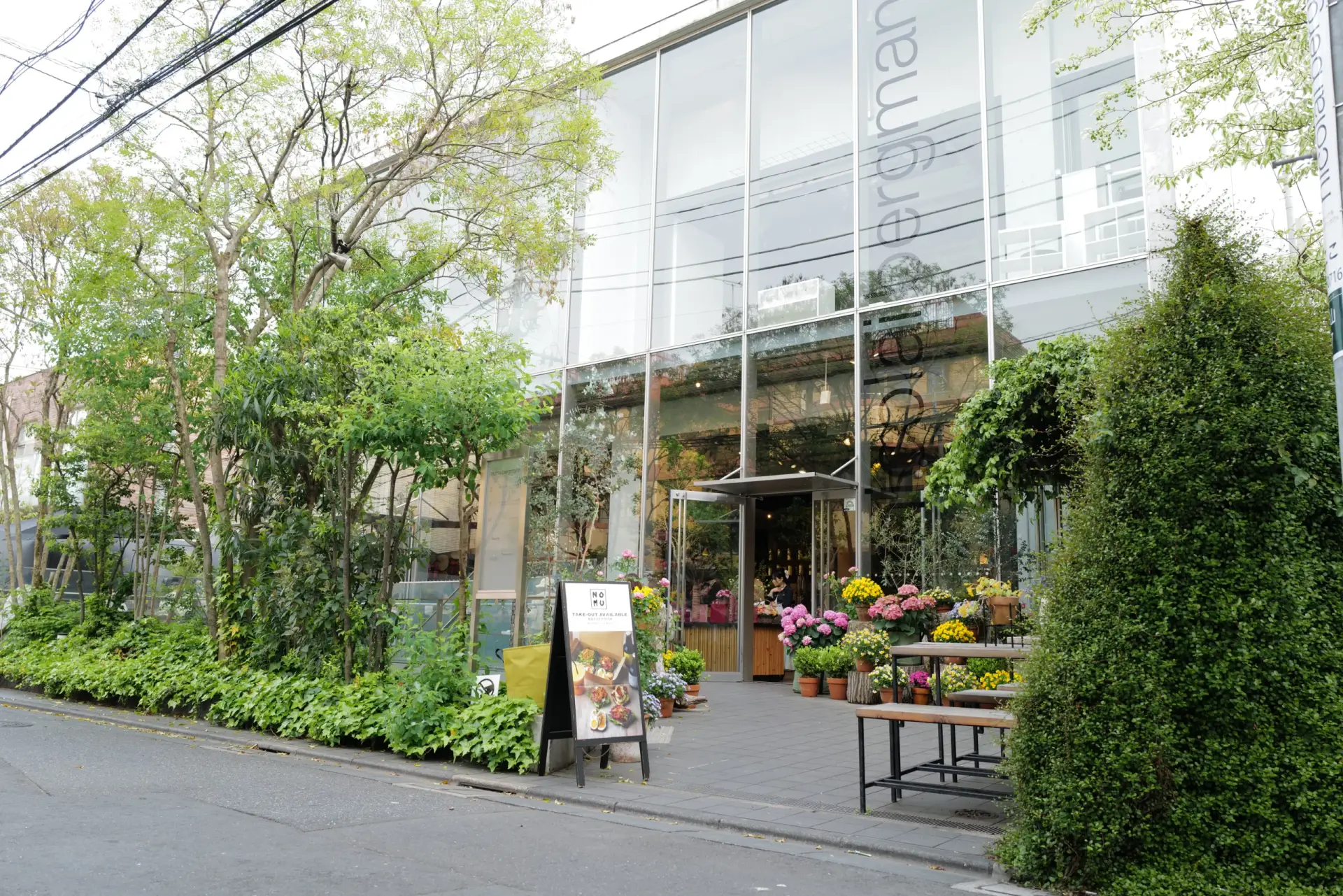 This is a place where a flower shop and a cafe coexist seamlessly. You can enjoy a meal or a coffee while being completely enveloped by the beauty and fragrance of nature, making it a true urban oasis.