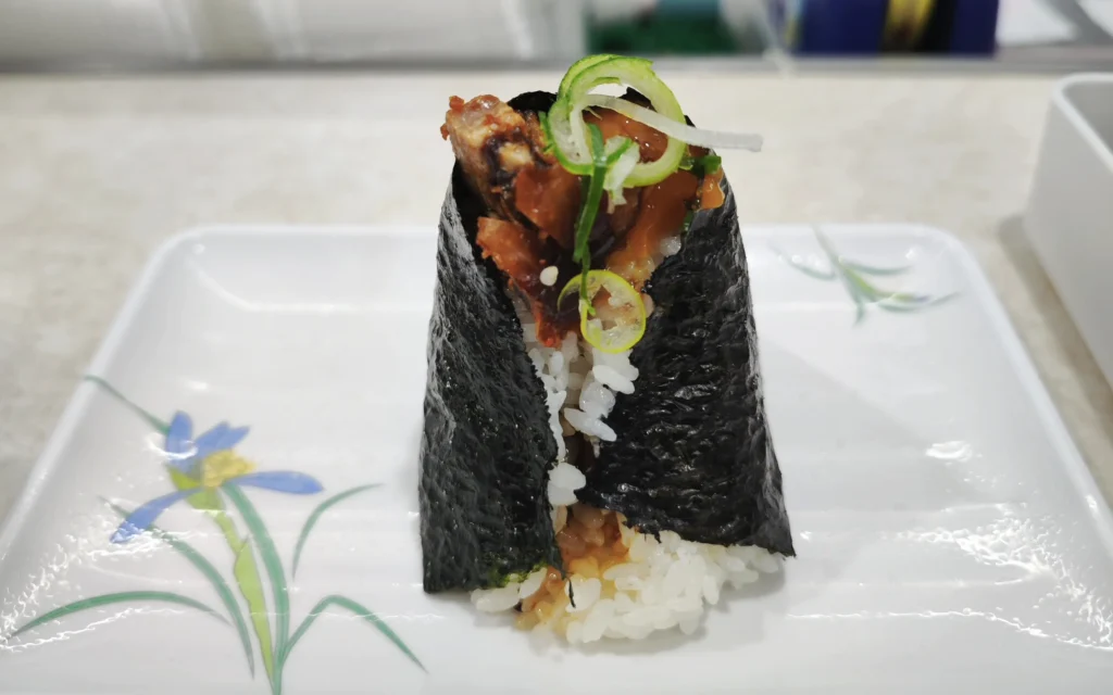 1. The rice is exceptional. Bongo uses Niigata Koshihikari — widely considered the best Japanese short-grain rice — cooked to the precise texture where each grain holds its shape while remaining soft and slightly sticky. When the rice is still warm and loosely packed (Bongo’s signature style), it releases a subtle sweetness that a convenience store onigiri simply can’t match.